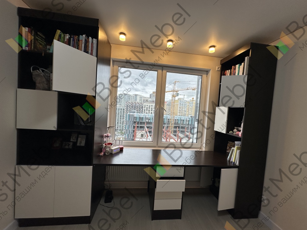 Заказ 00000150058. Письменный стол - целая творческая зона. Поверхность большая — хватает места и для творчества, и для учебы. С двух сторон удобные шкафы с полками и закрытыми секциями — можно аккуратно разложить все материалы, игрушки и тетради. Ящики вместительные, легко открываются.Отдельное спасибо службе поддержке, за уточнение деталей и объяснение как будет удобнее.
