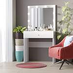 Искала туалетный столик в комнату. Качество хорошее, все в комплекте. Неглубокий как я и хотела. Много лампочек. Цена тоже достаточно невысокая. Мне понравился