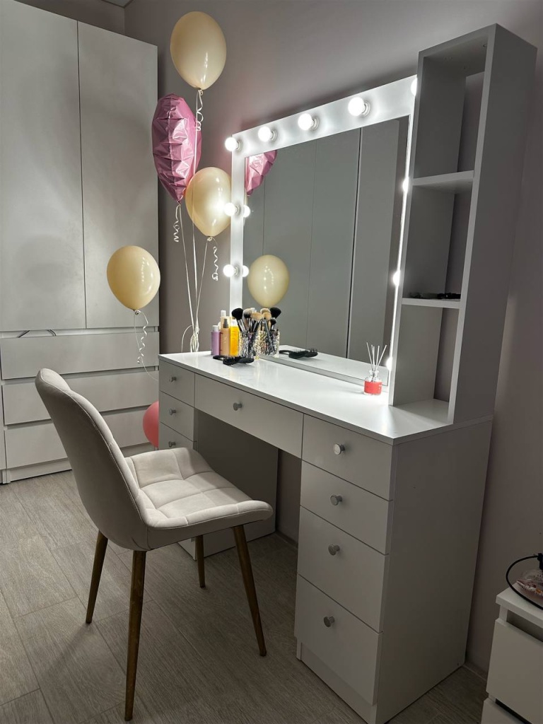 Туалетный столик Лацио 4 BMS дополнен продуманной системой хранения и позволит разместить под рукой все необходимые уходовые средства и аксессуары. Двухтумбовая модель с просторной столешницей и выдвижным ящиком в центральной части оборудована панно с зеркалом и боковыми открытыми полками. Особенно комфортным нанесение макияжа сделает встроенная по периметру зеркала подсветка. Купить туалетный столик Лацио 4 BMS и дополнить современный интерьер практичным предметом вам поможет наш интернет-магазин.