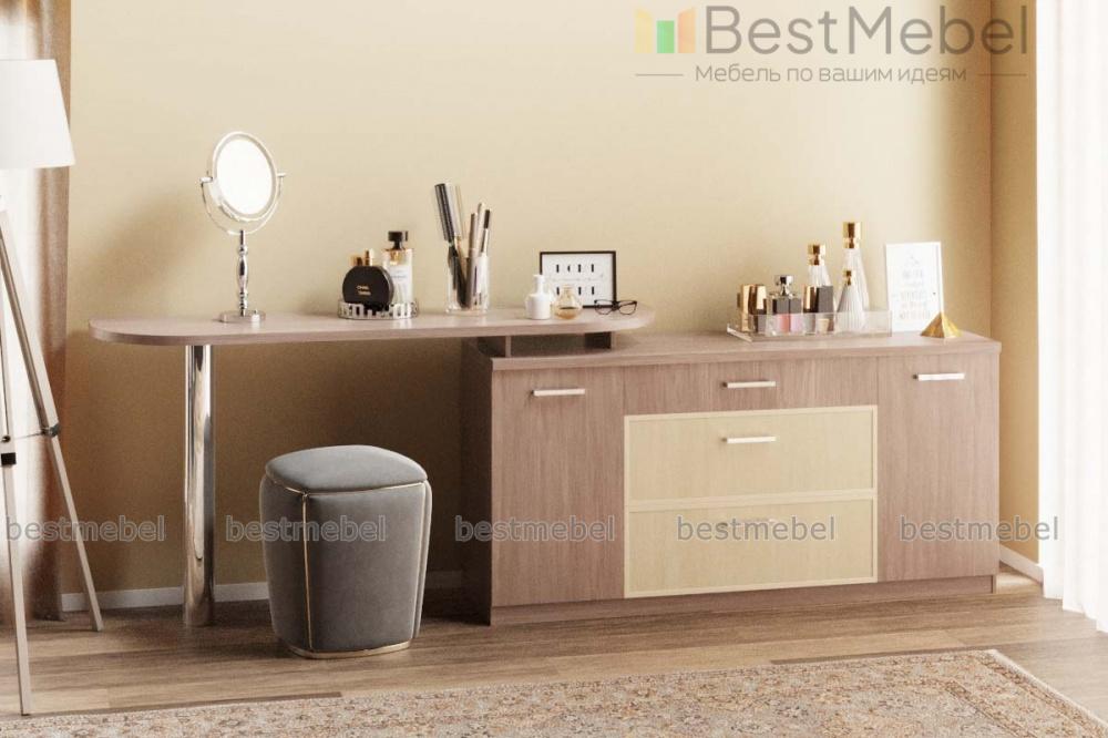 Туалетный столик Панни BMS выполнен в контрастных темных тонах и отличается универсальным современным дизайном. Широкий комод, оборудованный тремя выдвижными ящиками и двумя распашными отделениями, дополнен столешницей на круглой хромированной опоре. Практичная конструкция позволит вам не только разместить большое количество вещей, но и оформить телезону, оборудовать рабочее место или туалетный столик. Купить туалетный столик Панни BMS приглашаем в наш интернет-магазин.