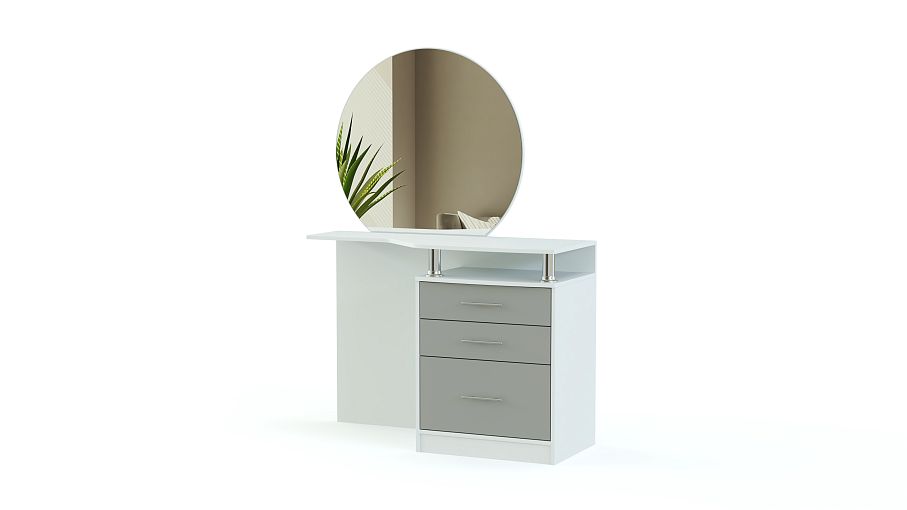 Одна из классических моделей, отлично вписывающихся в традиционные интерьеры. Круглое зеркало закреплено на широкой, удобно вырезанной столешнице, где достаточно места для косметики и парфюма. Для хранения мелочей предназначены и выдвижные ящики боковой тумбы. Туалетный столик Венеция BMS выполняется в спокойных сдержанных цветах, просто декорирован и придаст вашей комнате уют и легкий оттенок ретро. Порадует он и доступной на нашем сайте ценой.