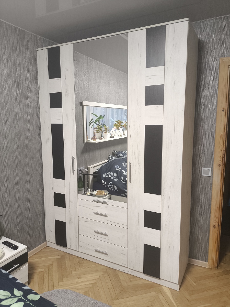 Заказ 00000270539, эскиз Прихожая Дублин 34 BMS (2050х2370х600)Нашли изначально фирму на известном маркетплейсе, изучили ассортимент прихожих и выбрали подходящий нам вариант готовой прихожей . Удобный конструктор на сайте помогает задать все нужные нам параметры - изменили размеры изделия, цвет, отобразили зеркально, добавили кромку. В общем, сумма заказа конечно же изменилась, но разница в цене была не критична. На изготовление и доставку ушло ровно 14 дней. Сборкой прихожей занимался мой муж сам, постепенно. Здесь есть минус - схема в бумажном варианте очень мелкая и неудобная , но в электронном виде можно через куар-код отсканировать и открыть версию с сайта, там пошаговая инструкция более доступная. По качеству прихожая соответствует ожиданиям. Есть небольшие сколы , но они не видны , к счастью. Из фурнитуры- мы решили заменить крючки, которые были в комплекте, на другие подходящие по цвету ( в комплекте были черные, а мы хотели серые), а также поменяли доводчики ( нажимной механизм push to open) на магнитный толкатель скрытого монтажа (это личное желание мужа). Фурнитура в соответствует качеству и цене .В целом покупкой остались довольны, планируем еще детскую мебель заказать. Рекомендую!