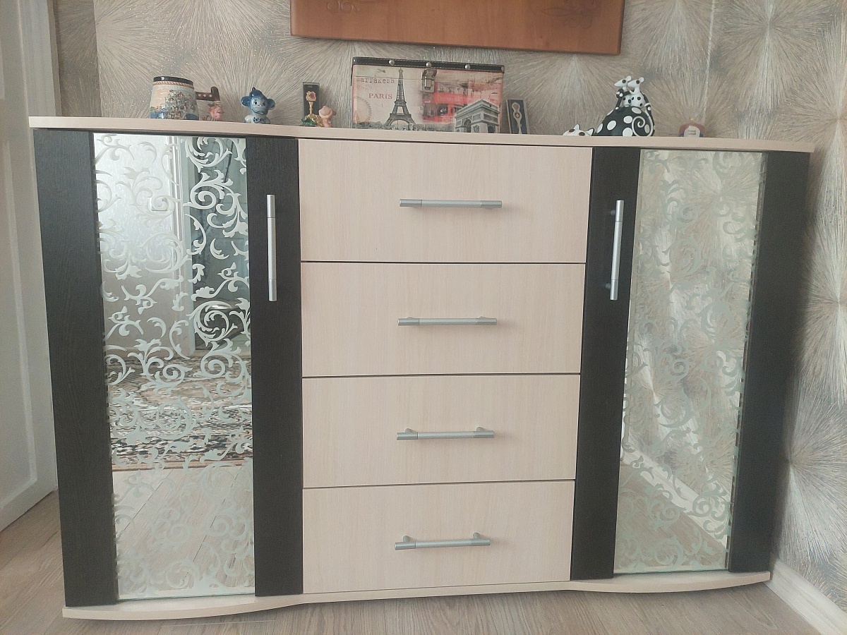 Очень долго подбирала комод. Наконец выбрала Берк 6, заказала точно  такой как на картинке. Очень понравилась тщательность с которой подошли к моему заказу . Несколько раз перезванивали, спрашивали уточняли, что мне лучше, поскольку я изменила размеры, то  был вопрос о количестве полок, может сделать больше. Уточняли какие мне лучше дверки: стеклянные или зеркальные. Понравилась тщательность выполнения заказа.  Перед доставкой заранее позвонили, сообщили время При доставке водитель попросил обязательно проверить целостность зеркальных деталей. И ещё порадовали наклейки  с номерами на каждой детали комода. Много мебели пришлось собирать, а тут прямо облегчили задачу! Спасибо за качество и красоту! Заказ 00000147753