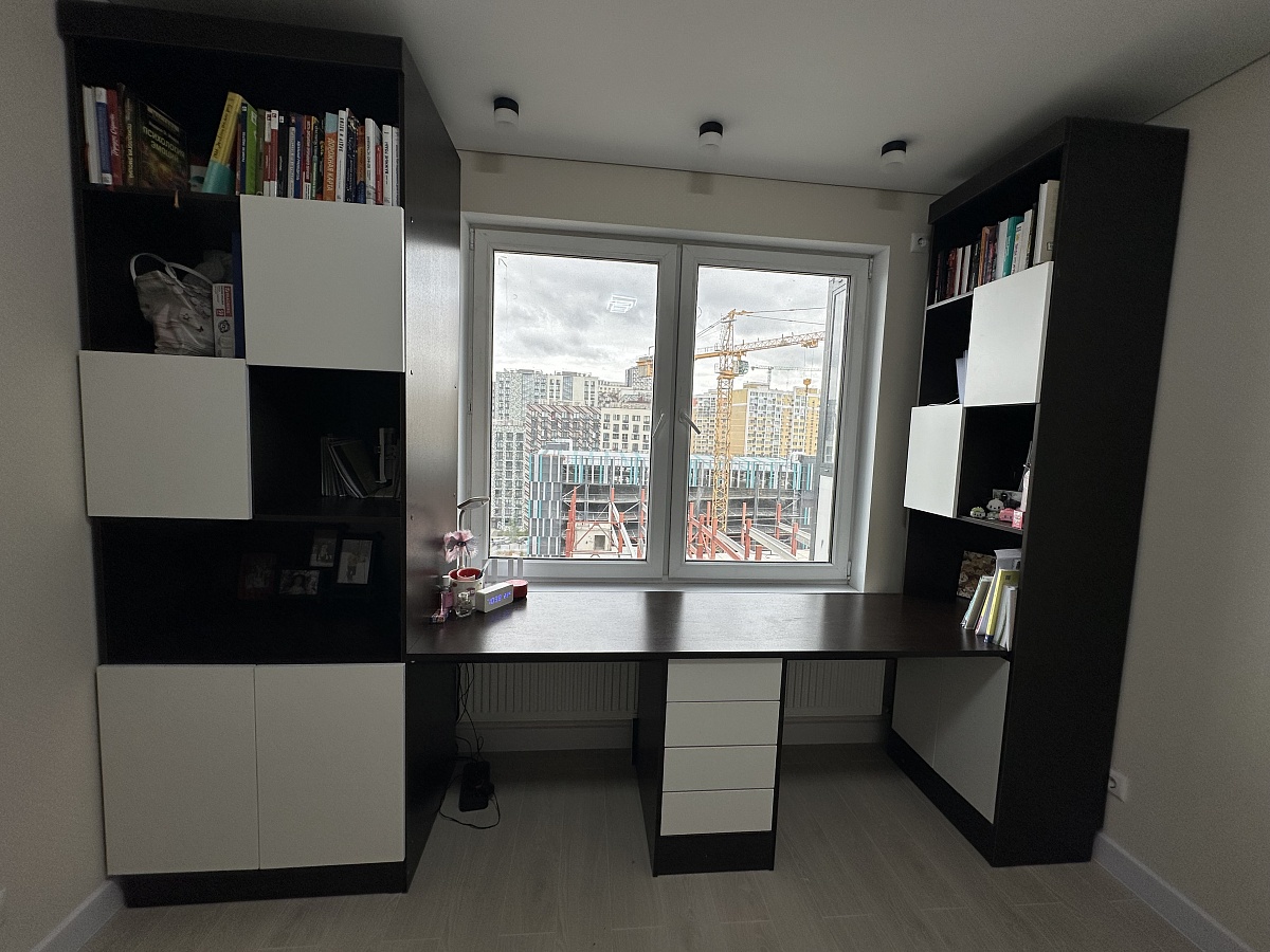 Заказ 00000150058. Письменный стол - целая творческая зона. Поверхность большая — хватает места и для творчества, и для учебы. С двух сторон удобные шкафы с полками и закрытыми секциями — можно аккуратно разложить все материалы, игрушки и тетради. Ящики вместительные, легко открываются.Отдельное спасибо службе поддержке, за уточнение деталей и объяснение как будет удобнее.