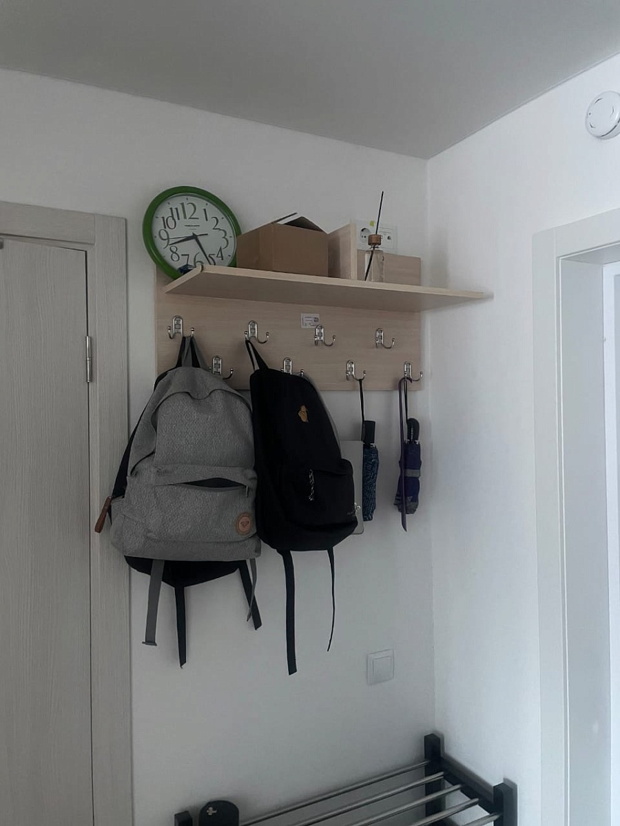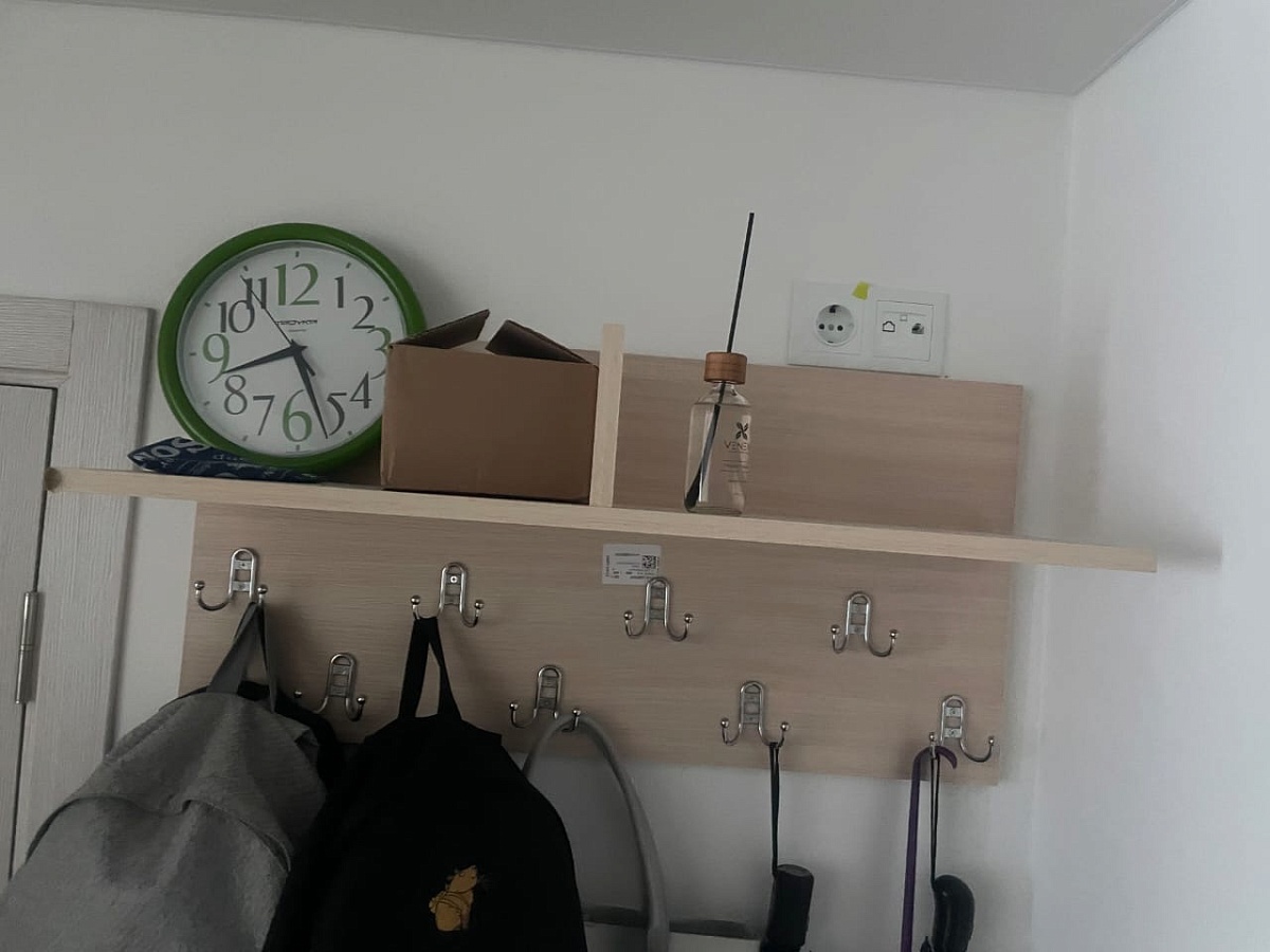 Вешалка Стайл 4 BMSЗаказ №1170941Я выбрала цвет Дуб молочный , чтоб под мою другую мебель подходила. Размер 800-400-300 вешалка с полоской, разграниченной пополам, и крючками. Хорошая вместительная вешалка. Удобно что-то разместить сверху. Доставка бесплатная. Подъем платный или самостоятельно.  Инструкции, считай, нет. Картинка с деталями на расстоянии, а какой порядок сбора деталей и чем к чему крепить в первую очередь - не указано